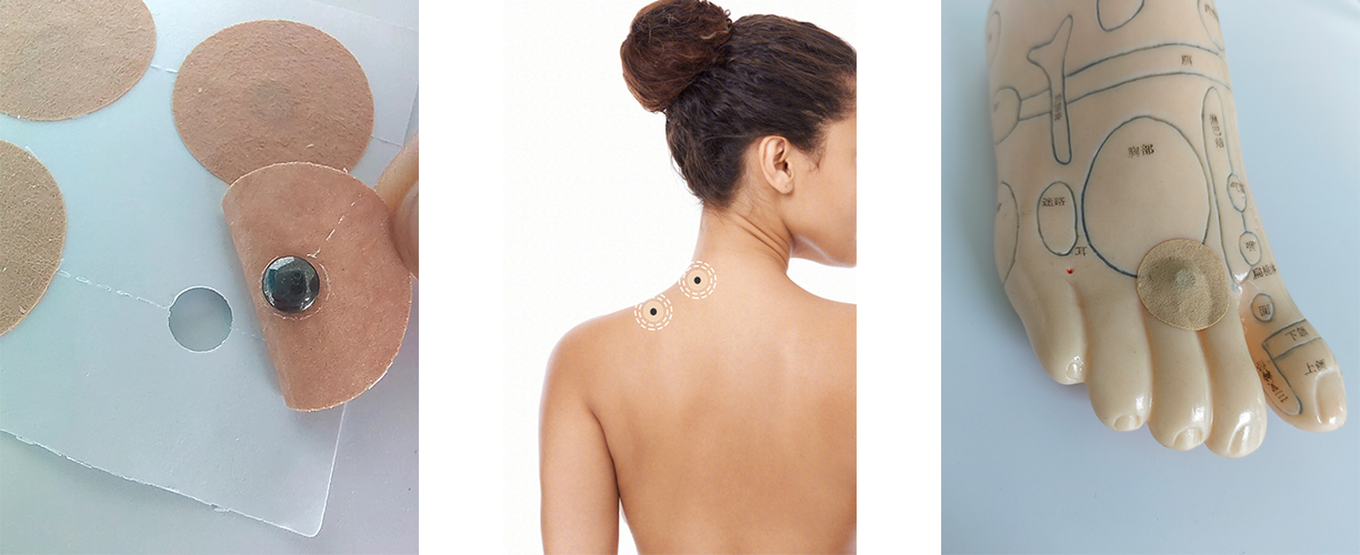 Magnetic therapy sticker are composed of magnets, medical tape, and sticky paper. The magnets are composed of cylindrical permanent magnets.