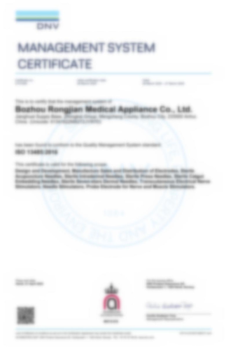 On March 28, 2025, Bozhou Rongjian Medical Appliance Co., Ltd. officially obtained the ISO 13485:2016 certification for medical device quality management systems, marking a significant milestone in our pursuit of internationally recognized standards in medical device manufacturing.